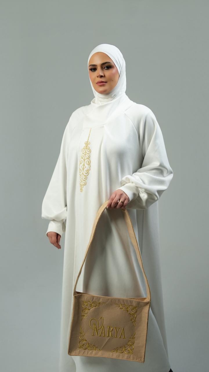 *وشنطه عليها تطريز بخيوط السيرما جمله لبيك اللهم لبيك ❤️